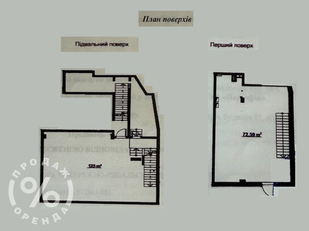 Перший поверх — 72,6 м2 з двома великими вітринами та окремим входом. Підвал — 125 м2, сухий і просторий, підходить під склад, шоурум, кухню чи інший формат. Встановлено сучасну вентиляцію та кондиціонування, є виводи під комунікації. Висота стелі понад 3 м.
