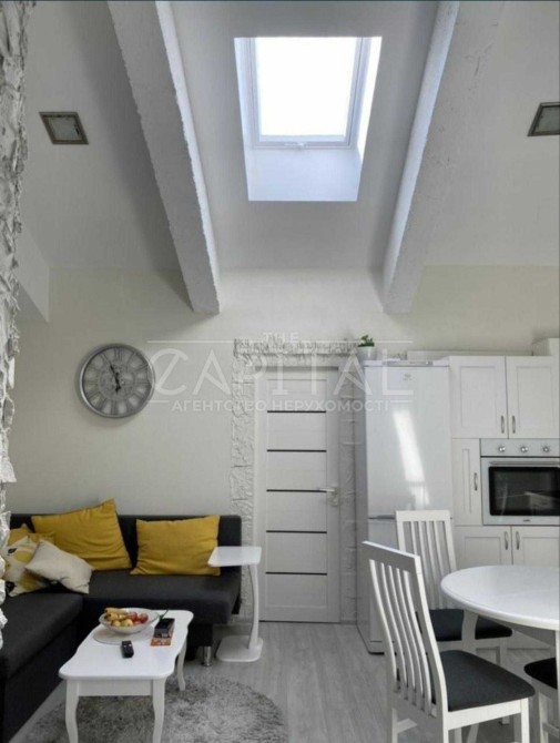 Завдяки високому поверху квартира має мансардні вікна, що наповнюють простір світлом і відкривають захопливий краєвид на місто.