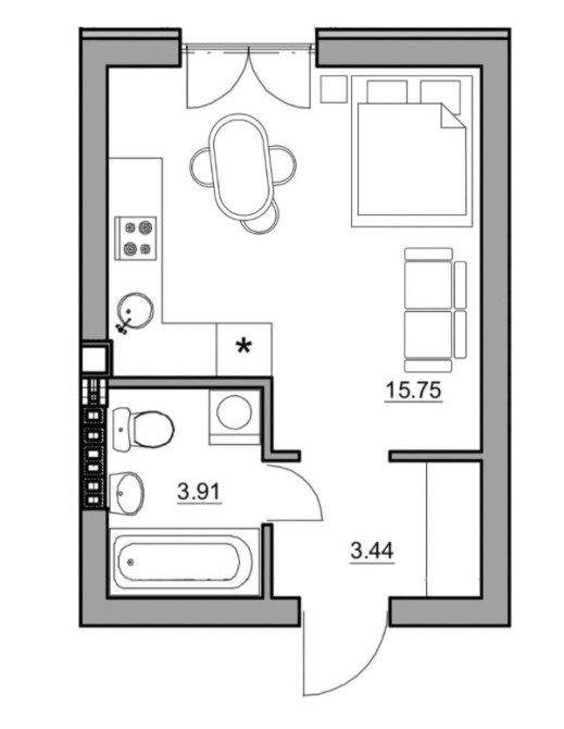 • Загальна площа 23 м2