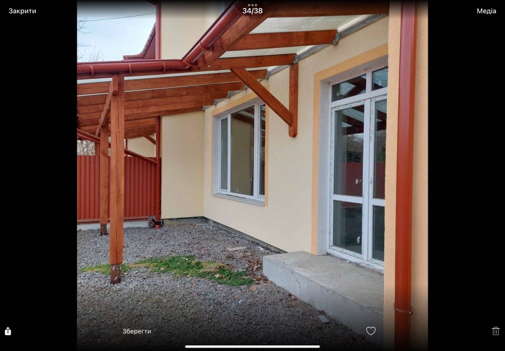Ділянка 3 сотки, заведені газ, вода, світло, автономна каналізація, паркан, накриття під авто, автоматичні ворота, вихід з вітальні на задній двір, де є відпочинкова зона, яка накрита гартованим склом. Будинок утеплений пінопластом 10 і зроблений фасад. 2 монолітні перекриття, стіни поштукатурені.