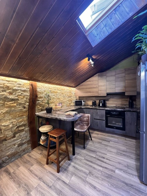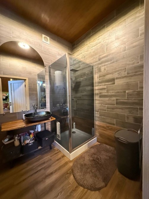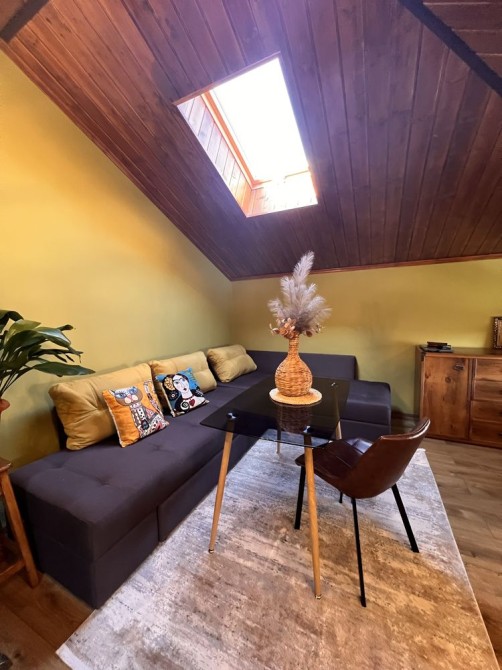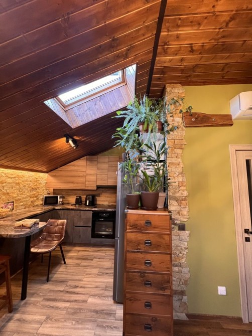 • Стеля обшита деревом, що створює особливу атмосферу