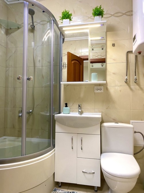- санвузол сумісний, сучасна плитка, пральна машина, бойлер.