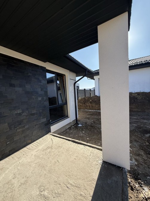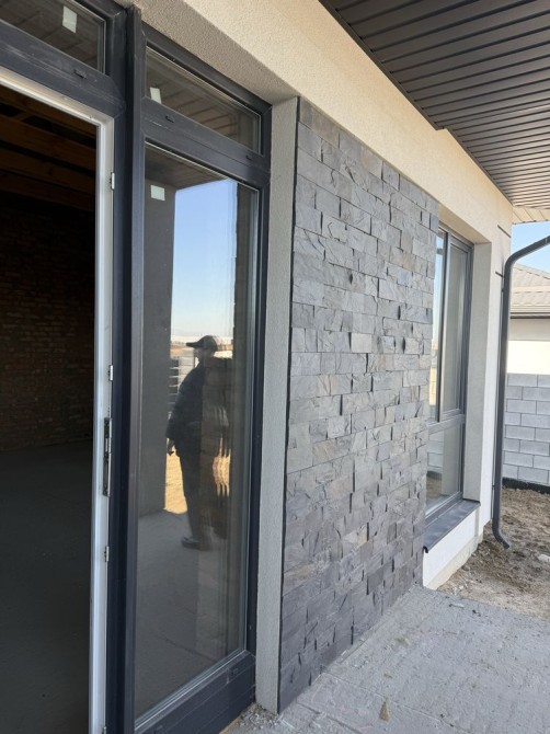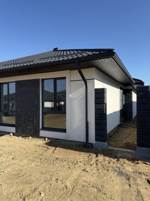 Повністю пофарбований та оздоблений фасад, встановлені софіти, водовідливи, вікна та вхідні двері.