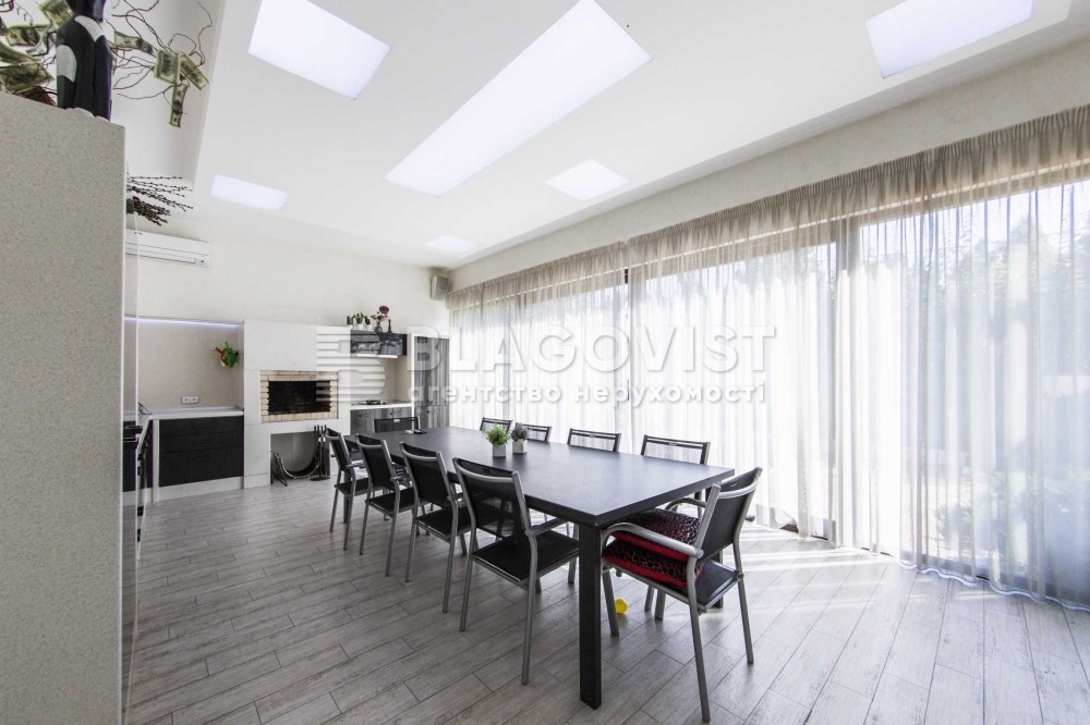 Приміщення з барбекю і розсувною скляною системою знаходиться в будинку. Будинок повністю мебльований і укомплектований технікою, 8 інверторних кондиціонерів, побутова техніка, акустика, будинок повністю оснащений світлодіодним освітленням.