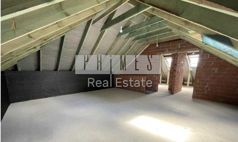 Продається новий індивідуальний житловий будинок котеджного типу загальною площею 131 м.кв. під чистове оздоблення, розташований в селі Крячки Фастівського (колишнього Васильківського) району Київської області на території нового житлового масиву із сучасною котеджною забудовою, що перебуває на відстані 20 км від станції метро «Теремки» міста Києва та за 1,5 км від міста Васильків. Житловий будинок складається з першого та мансардного поверхів. Загальна площа будинку із допоміжними спорудами становить 173,1 м.кв., з яких: а) площа будинку ‒ 131,0 м.кв., у тому числі житлова (основна) ‒ 94,1 м.кв. та допоміжна (підсобна) ‒ 39,6 м.кв.; б) площа тераси – 23,1 м.кв.; в) площа трьох балконів – 13,4 м.кв. (5,8 + 4,9 +2,7 м.кв.); площа ґанку – 5,6 м.кв. Котедж вміщує в собі 5 (п’ять) доволі просторих кімнат, 2 (два) санвузли (на кожному із поверхів), 1 (одне) технічне приміщення (котельня або бойлерна), 2 (два) коридори, 1 (одну) вітальню із виділеною еркером обідньою зоною, що поєднана з кухнею. Із вітальні є окремий вихід на велику терасу, з якої відкривається затишний вигляд на внутрішній двір. Кожна з трьох мансардних кімнат має окремий вихід на балкон. Над усією площею мансардного поверху розташоване містке горищне приміщення. Будинок приєднаний до електропостачання потужністю ‒ 12кВт (3 окремих фази). Має свердловину глибиною 55 метрів із фактичним дебітом (спроможною потужністю) ‒ 2,5 м.куб./год. та каналізацію септик з переливом на 11 м.куб. На усій площі першого (крім житлової кімнати) та у санвузлі мансардного поверхів встановлена система водяної теплої підлоги фірми «Rehau». По котеджу розведені: опалення, водопостачання і каналізація. В будинку передбачена можливість встановлення камінної топки, а також приєднання котеджу до газорозподільної мережі та всесвітньої мережі Інтернет. Індивідуальний житловий будинок розташований на земельній ділянці площею 0,075га з цільовим призначенням – (02.01) для будівництва і обслуговування житлового будинку, господарських будівель і споруд (присадибна ділянка). Під житловою забудовою перебуває 0,0115га земельної ділянки, решта 0,0635га займає просторий двір. Кадастровий номер земельної ділянки: 3221487004:03:006:0328. Земельна ділянка огороджена парканом із монолітного фундаменту, що опорядковане металевим штахетом із обох боків та металевим профілем з тильної та фасадної сторін. Заїзд у двір має відкатні ворота. На території двору (перед будинком) облаштоване загальне паркомісце на 2 (два) автомобіля, решта двору засіяне газонною травою. Котедж побудований з якісних матеріалів за проектом європейського архітектурного бюро. Так, фундамент, перекриття та міжповерхові сходи ‒ монолітні. Стіни будинку збудовані з газоблоку AEROC D500 (товщиною 300мм), що утеплений пінопластом 100мм. Внутрішні міжкімнатні перегородки виконані із цегли. Дах ‒ металочерепиця фірми «Ruukki», що утеплений мінераловатними плитами загальною товщиною 200мм. Вікна вироблені з профілю фірми «Rehau» серії EVRO 70. Фасад котеджу покритий акриловою штукатуркою. Будинок за усім периметром має вимощення шириною 0,9 метри, що облаштоване фігурними елементами мощення (ФЕМ). Зручне ергономічне планування будинку, а також наявність високих стель обох поверхів дає можливість відчувати себе вільно і затишно. Завдяки правильному утепленню зовнішніх стін будинку, у ньому прохолодно влітку та тепло вз
