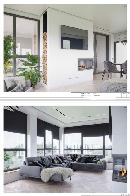 Будинок зведений згідно з професійним дизайн-проєктом, включаючи схеми монтажу, планувальні креслення, розміщення освітлювальних приладів, розеток, вимикачів, підлоги, стелі, теплої підлоги, а також специфікації сантехнічного та освітлювального обладнання.