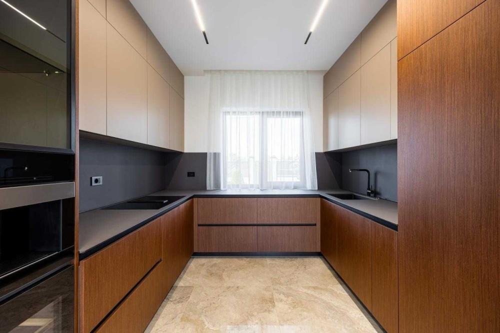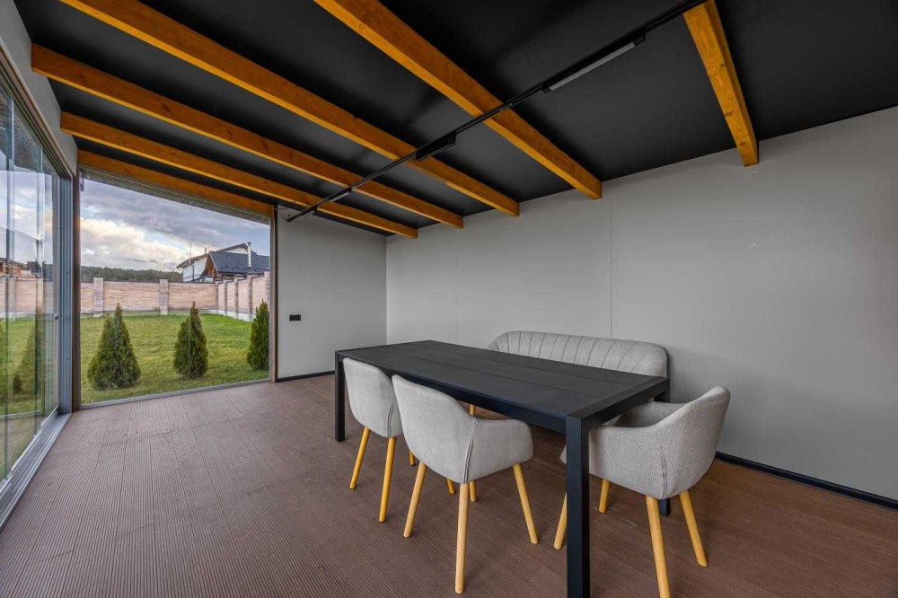 Загальна площа будинку - 236 м2, житлова - 110.8 м2, кухня - 24.8 м2.