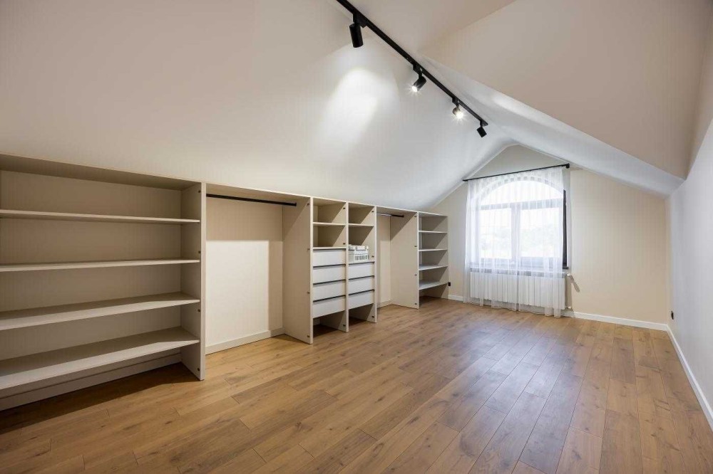 Другий поверх: чотири житлові кімнати, гардеробна, санвузол, вихід на горище.