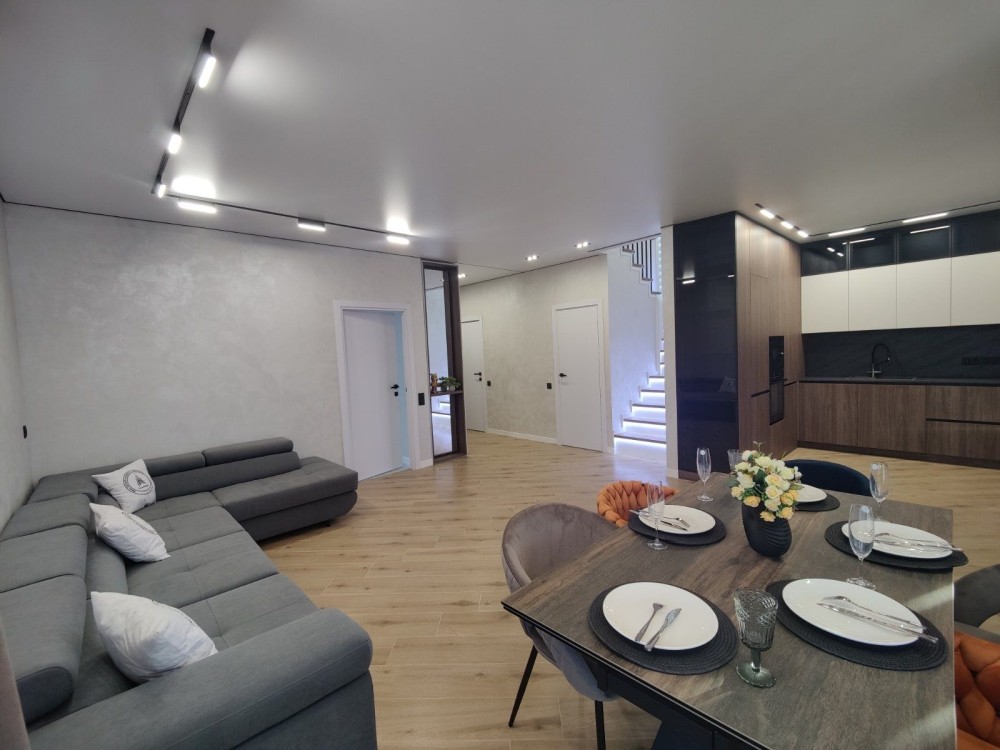 Сучасний двоповерховий дім із дизайнерським ремонтом, де кожен сантиметр продуманий до дрібниць.