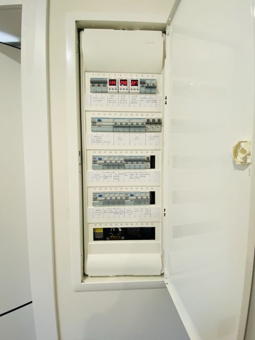 Вся кольорова гама внутрішнього оздоблення будинку виконана в світлих приємних тонах. По всьому будинку водяна тепла підлога, встановлена система якісної фільтрації води, двоконтурний електрокотел, що розташовані в окремій підсобній кімнаті, до будинку заведено 15 кВт електрики,3 фази, встановлений двотарифний лічильник, є обладнане місце для зарядки електромобіля.