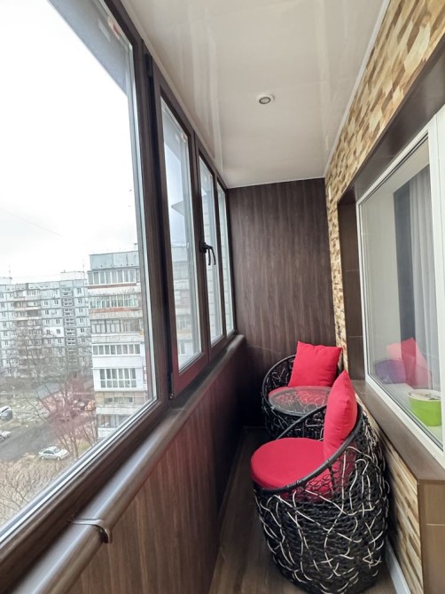 Відмінно зроблений 6м балкон з зоною відпочинку.