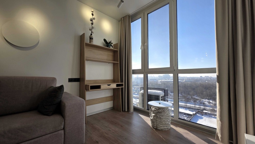 Квартира розташована на 16 поверсі з 16, що гарантує максимум світла, панорамні краєвиди та відсутність шуму зверху.