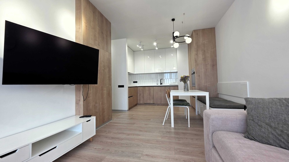 Пропонується до продажу сучасна, стильна квартира площею 45 м² з якісним дизайнерським ремонтом та повною комплектацією у популярному житловому комплексі ЖК «Файна Таун».