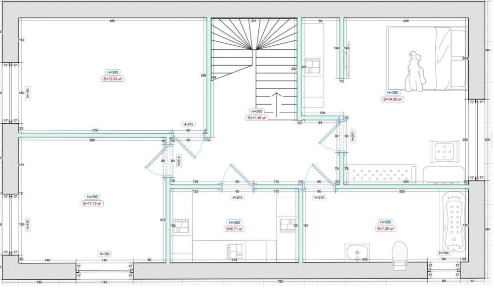 - стіни з газоблоку 380 мм;
