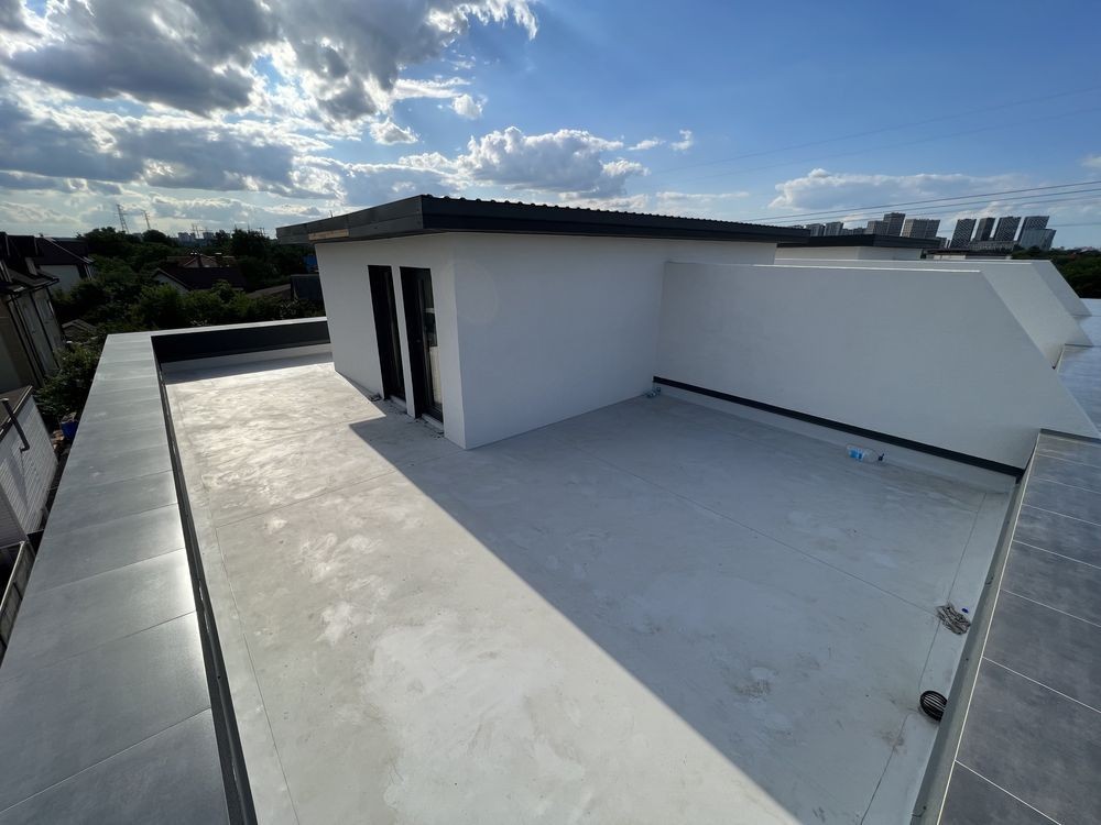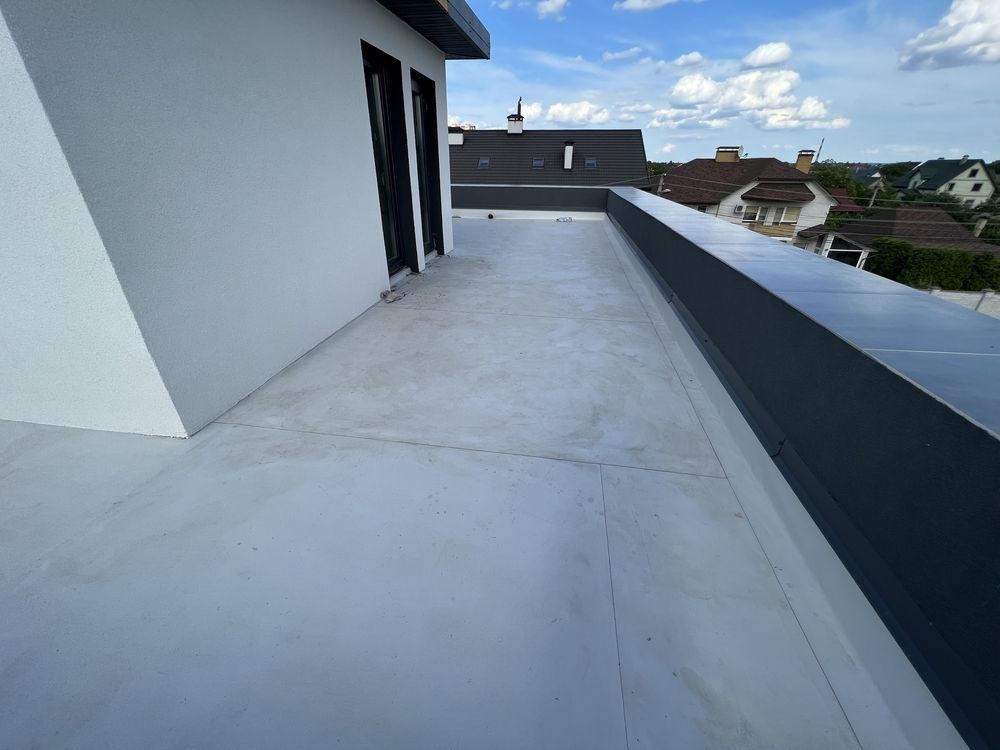 - дах монолітне перекриття утепленний пінополістиролом 300мм. Виконана гідроізоляція ПВХ мембраною.