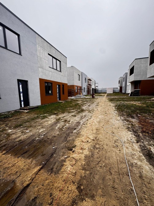 Перша черга з 22 таунхаусів вже побудована, з готовими фасадами.