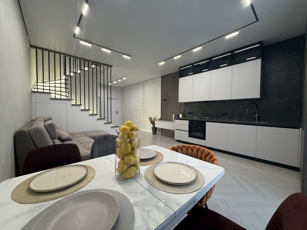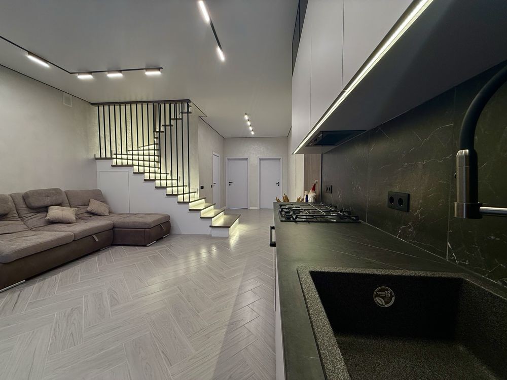 Пропонується до продажу сучасний таунхаус з професійно виконаним дизайнерським ремонтом, створеним у світлих, гармонійних тонах. Кожна деталь продумана для максимального комфорту: від якісних матеріалів до зручного планування.