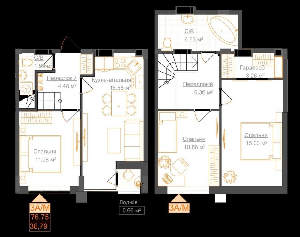 Загальна площа - 77 м2