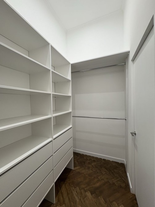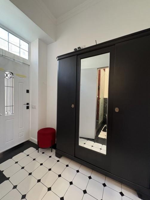 Для зберігання речей продумана функціональна гардеробна .