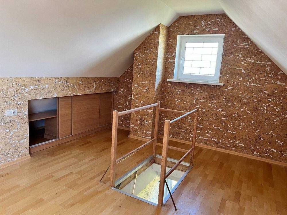 Фасадное наружное утепление и утепление полов 1 этажа - с использованием изоляционных панелей из черной агломерированной пробки по технологии EXPOCOR, материал обладает уникальной тепло- и звукоизоляцией, долговечностью и устойчивостью к влаге, металлопластиковые окна с защитными металлическими роллетами.