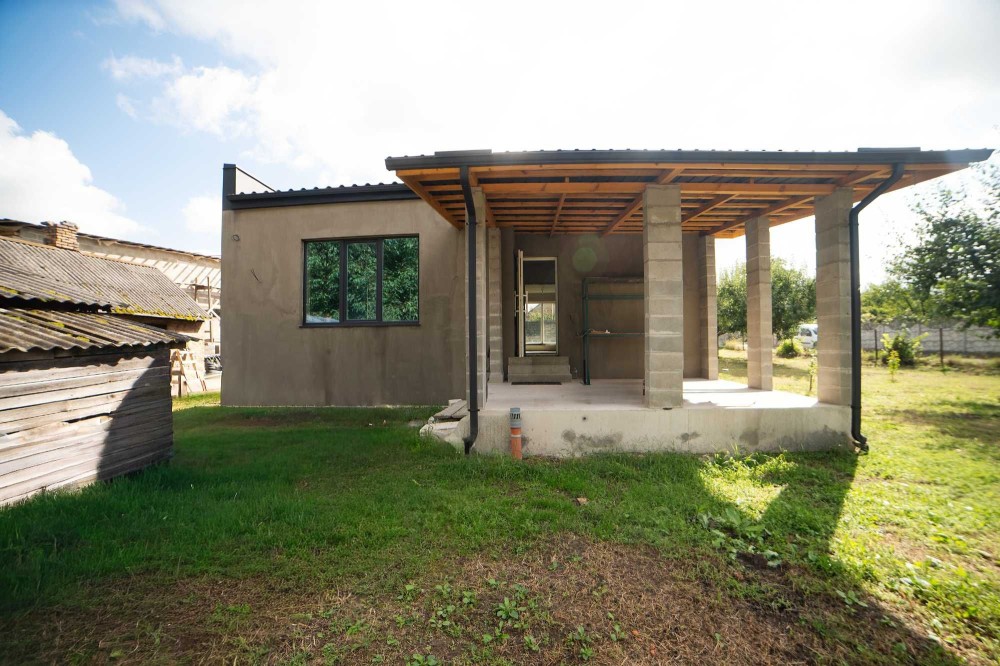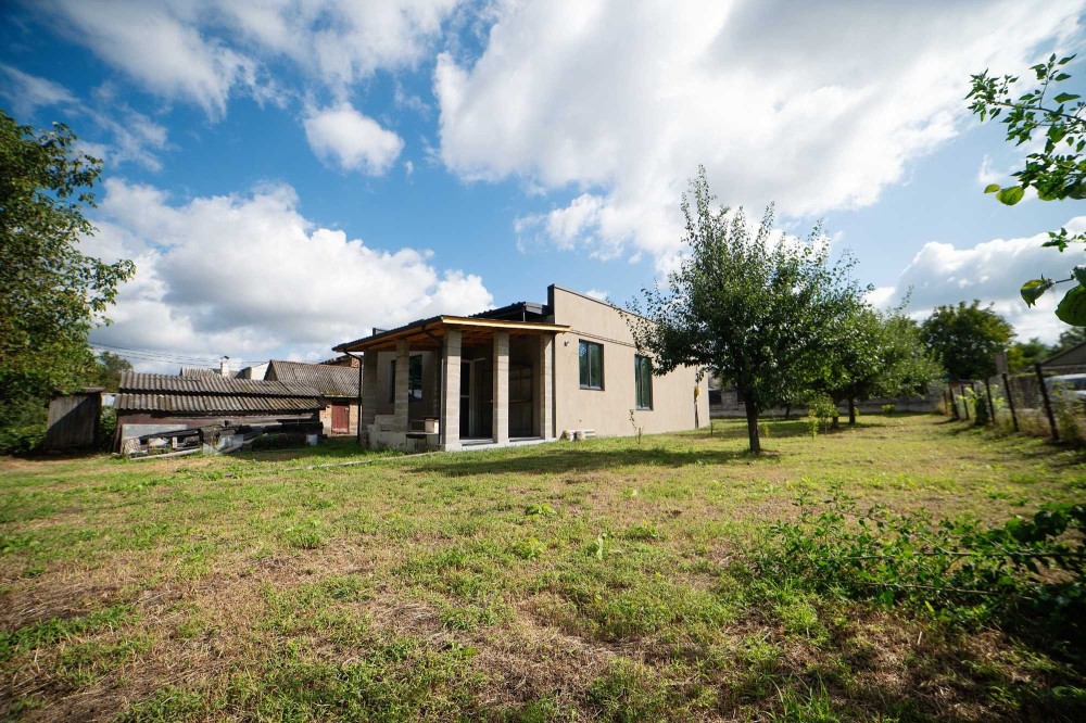 Сучасний будинок з терасою будувався виключно для себе, огороджений парканом з автоматизованими воротами. Армований фудамент 1.50 м., цоколь 80 см. Матеріал стін — надійний газоблок “Стоунлайт”. Фасад будівлі додатково утеплено пінополістерольними плитами (10 см.). Дах плоский, накритий якісною німецькою металочерепицею. Панельне перекритя. Є можливість підняти другий поверх.