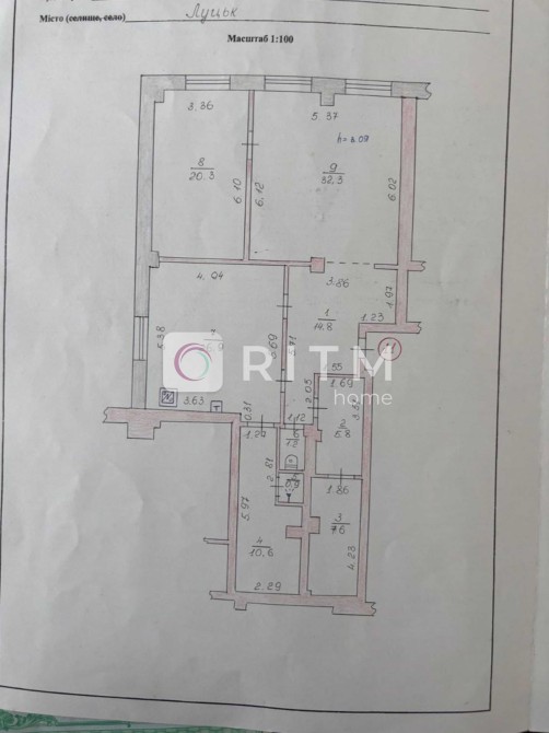 Висота приміщень — 3,09 м
