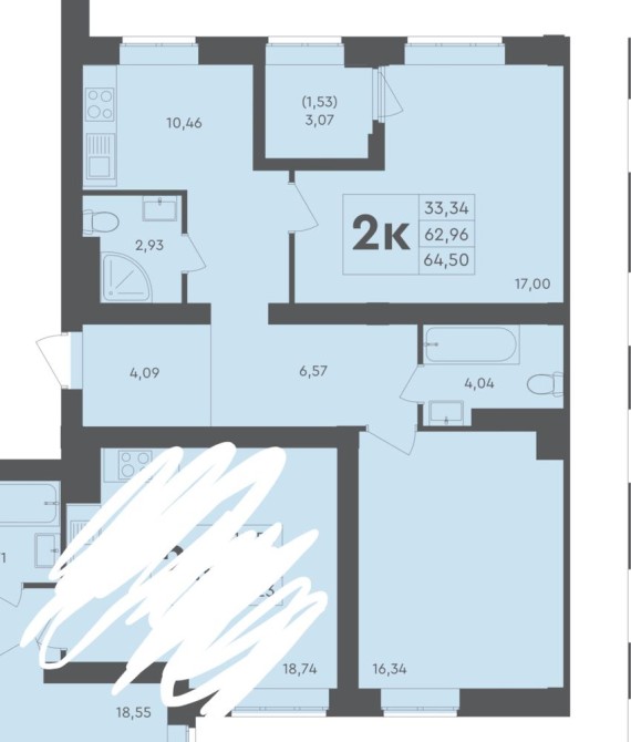 Продаж великої 64,5 м2  2к квартири ‼️ ЖК Скандія 2 поверх - фото 3