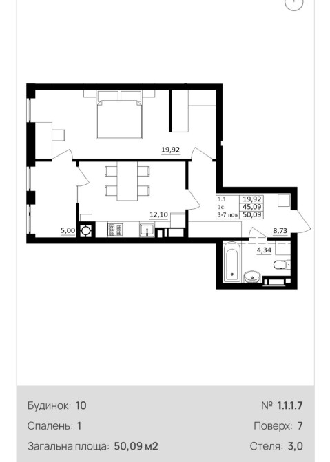 • Загальна площа 50.09 м2