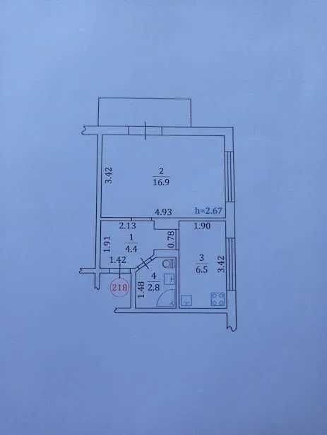 Площа: 31.5 / 16.9 / 6.5 кв.м.