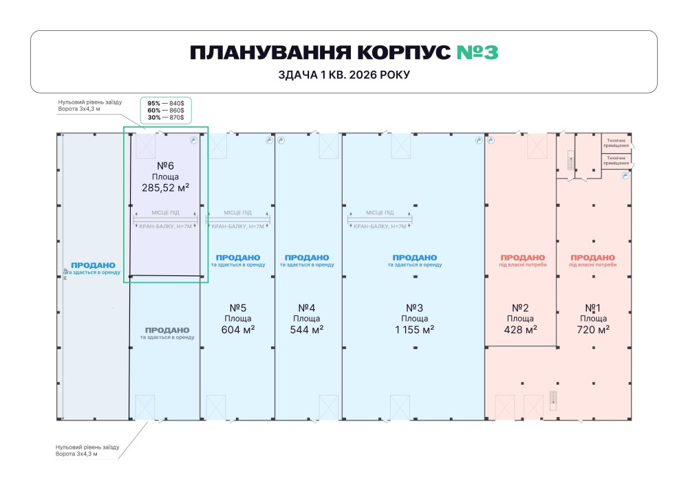 6. Підлога — З.б. плита з топінгом, навантаження 3,5 т/м2
