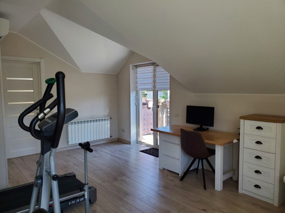 На 1-му поверсі розташовані кабінет, велика вітальня з виходом на терасу, окрема кухня, великий санвузол, гараж.