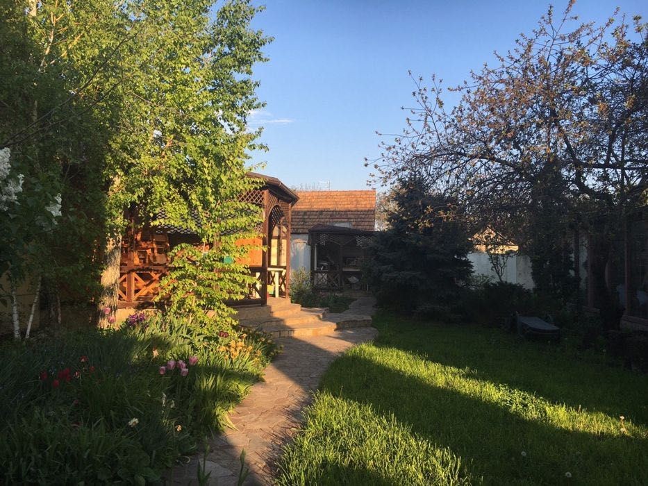 Велике горище з балконом і підвал. Просторий двір з альтанкою, сараєм, вольєром, генератором, мангалом, газоном і вічнозеленими насадженнями. Гарна прибудинкова територія, у дворі є місце для 3-4 машин + 1 місце в гаражі