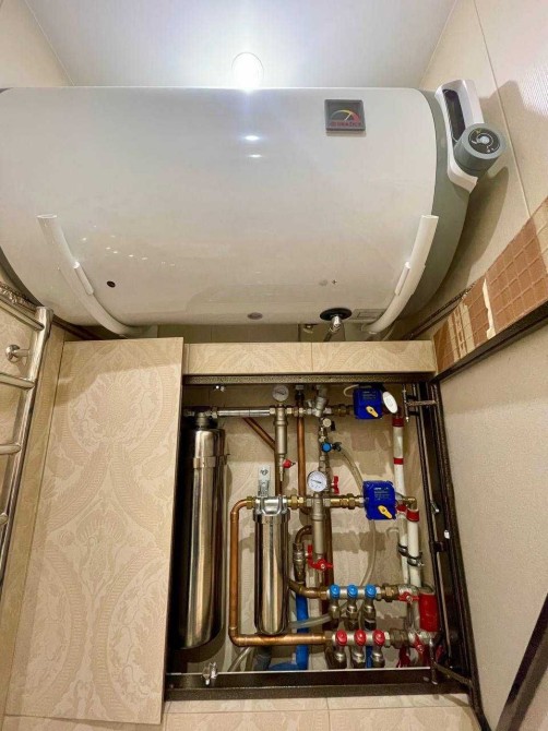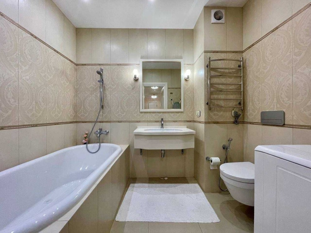 Кондиционер, Подогрев полов, Ванна, Душевая кабина, Мебель на кухне, Сигнализация, Пожарная сигнализация, Видеонаблюдение, Подземный паркинг, Лифт, Грузовой лифт