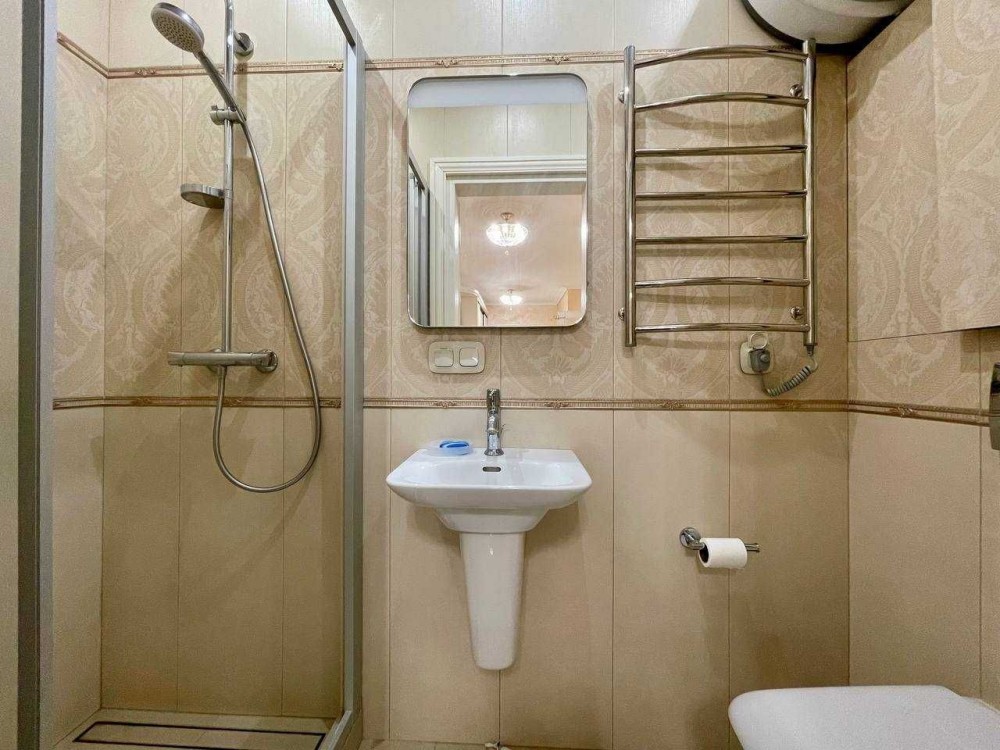 Квартира з ремонтом, санвузол суміщений, ванна, пральна машина, бойлер,електрична плита. Опалення електричне.