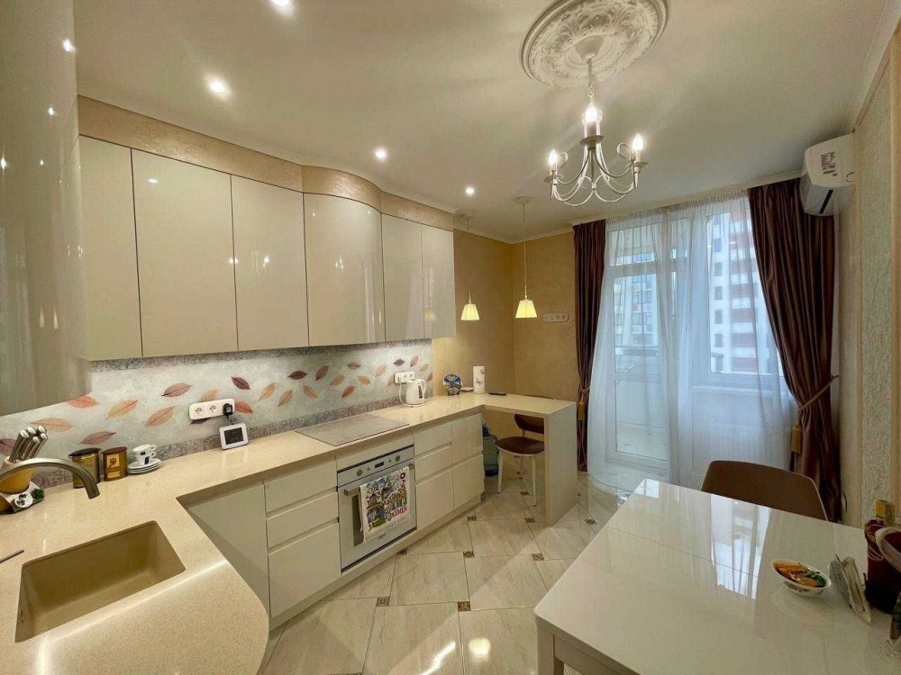 Ремонт робили для себе. Кухня Інтерстиль. Дубова підлога. Дубова кухня. Іспанська плітка. На стінах іспаньска веніціанка. Двері Касоні. Система фільтрації води (грубої та зворотнього осмосу). Три кондиціонери. ТБ. Пральна машина. Холодильник. Плита. Ліжка та диван. Багаторівневе освітлення. Меблі із натурального дерева. Сигналізація. Система протикання води Нептун. Відеоспостереження.