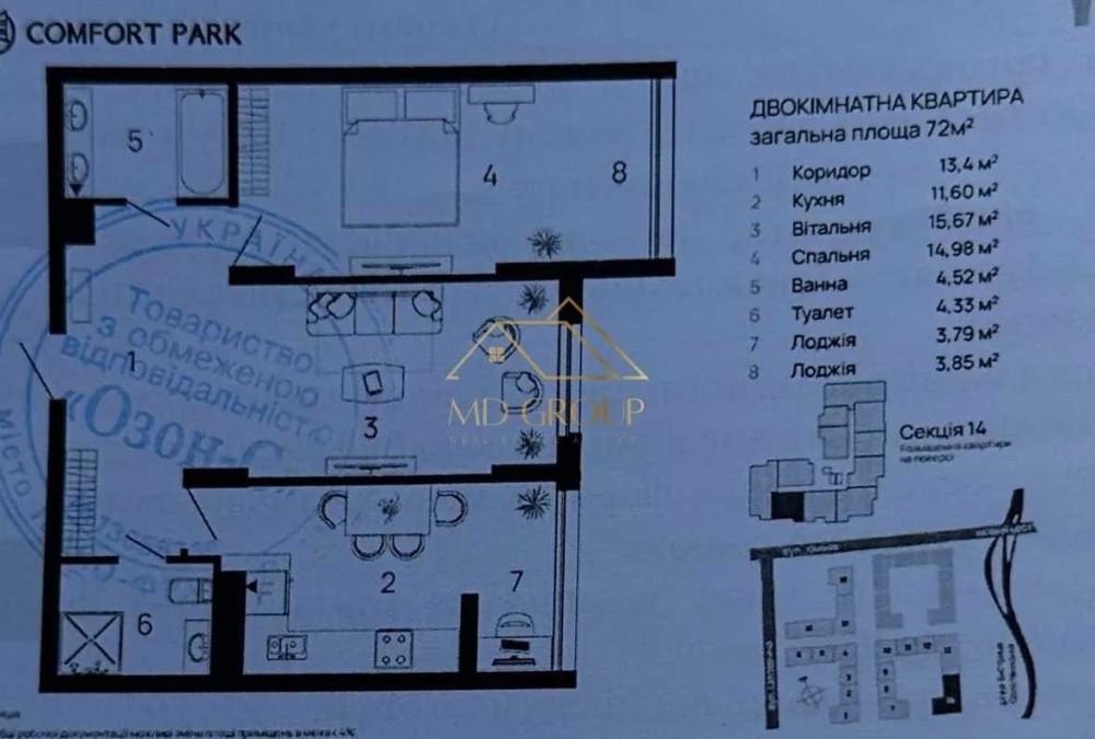 • Загальна площа 72.4 м2