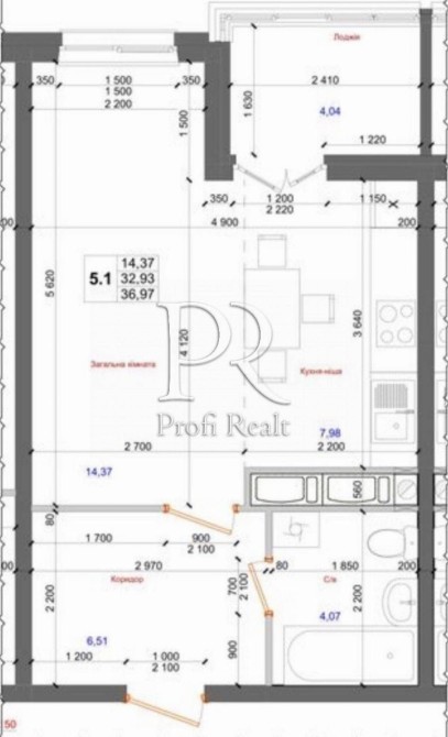 • Загальна площа 37 м2
