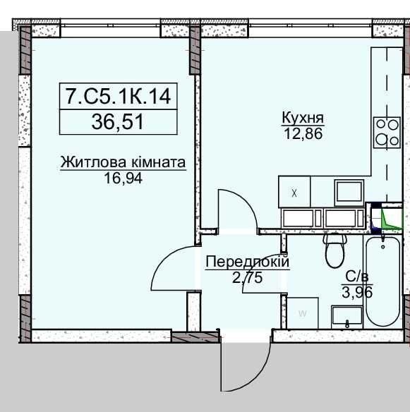 • Загальна площа 37 м2