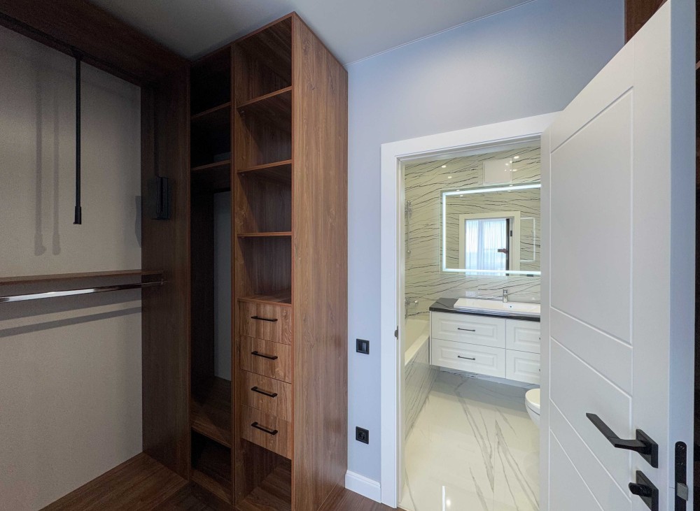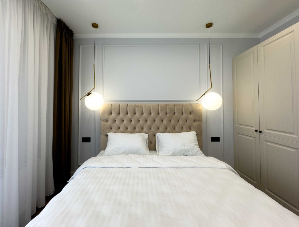 - також слід відзнати меблі у квартирі : двохспальне ліжко з ортопедичним матрацом , яке має додаткову нішу для особистих речей. Зручний диван на кухні , який має повноцінне спальне місце. Шкаф при вході в квартиру, шафа-купе в першій спальні та окрема гардеробна в хозяйській кімнаті.