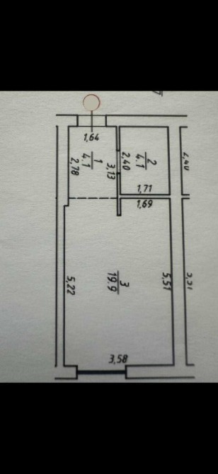 Загальна площа — 28.1 м², житлова/кухня — 19.9 м².