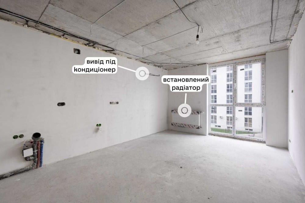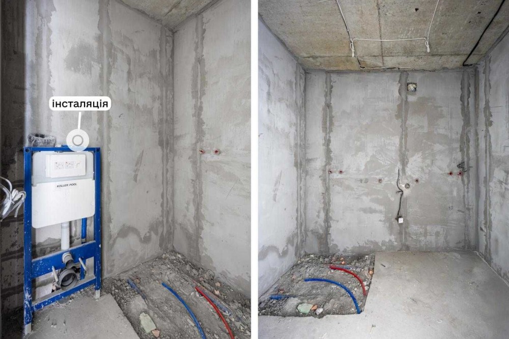 В квартирі зроблений частковий ремонт: розведена електрика, встановлений щиток, залита стяжка під плитку/ламінат, стіни виведені під фарбування, розведена сантехніка, встановлена інсталяція, прокладена траса під кондиціонування, підготовка під встановлення електричної теплої підлоги в санвузлі, коридорі та кухні, встановлений радіатор.
