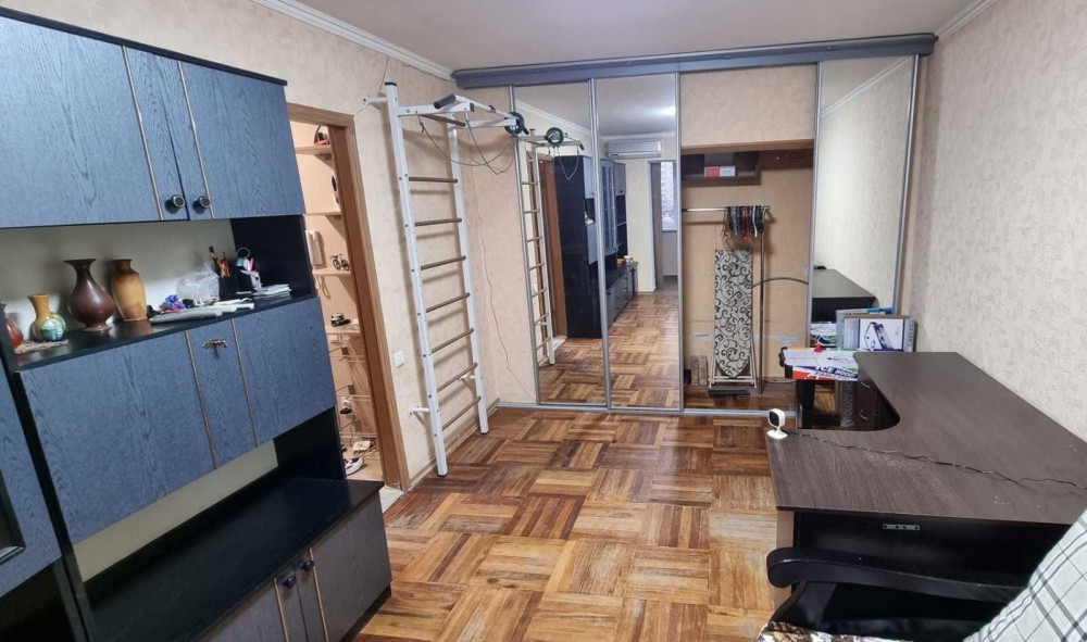 Двухэтажная кровать (разбирается), в зале диван раскладной.Торг уместен.