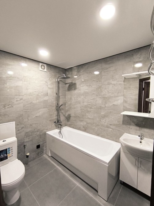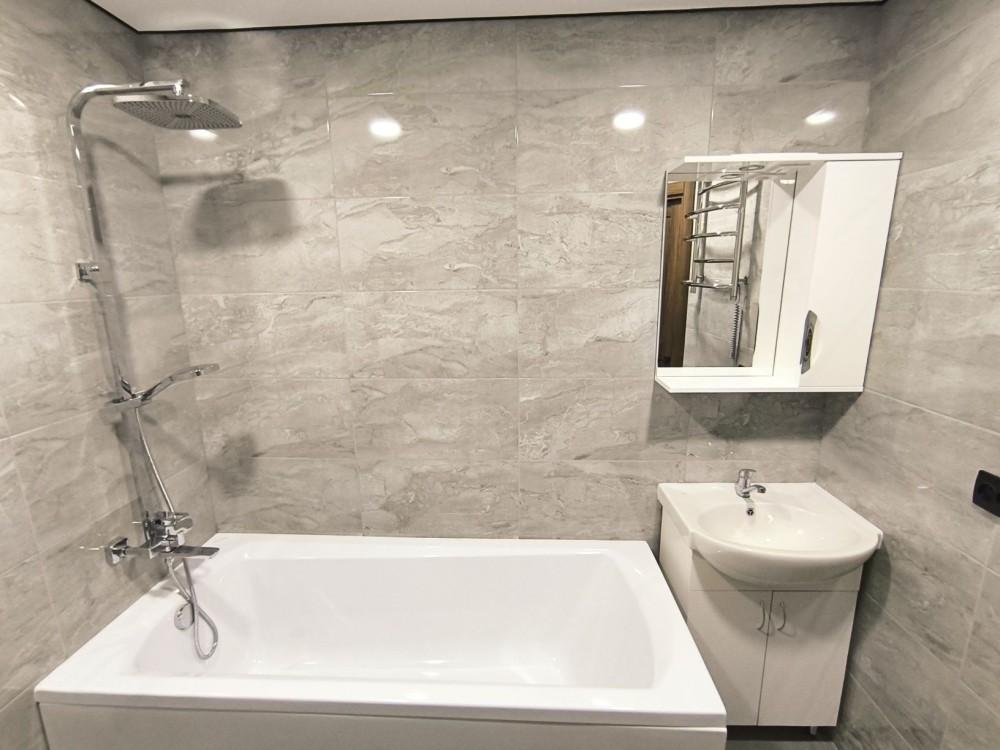 Санузел совмещённый в кафеле.