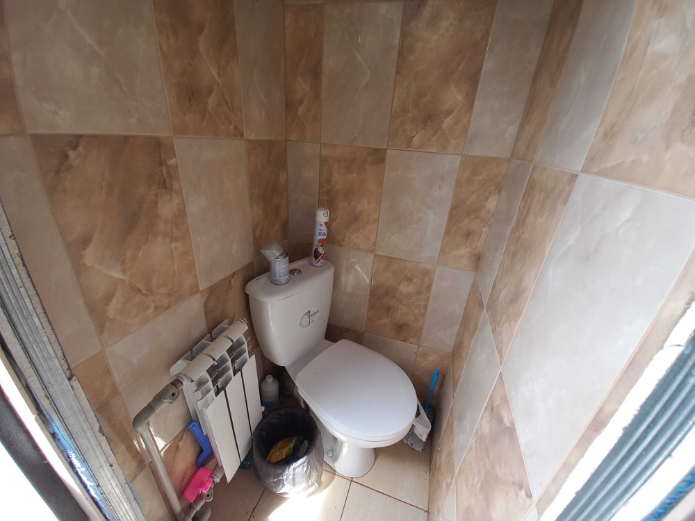 С/узел свой, облицован плиткой, сделан сток. Канализация подключена к городской только для этой квартиры.