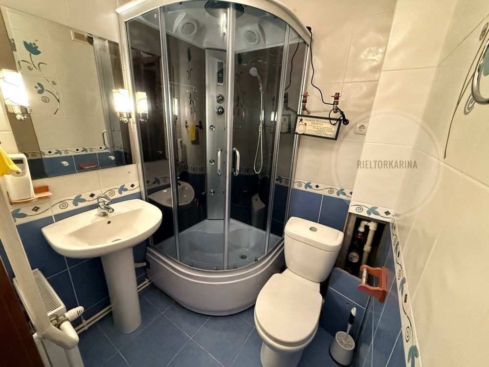 Загальна площа 90м2, 2 санвузли, один з душовою кабіною, інший з ванною.