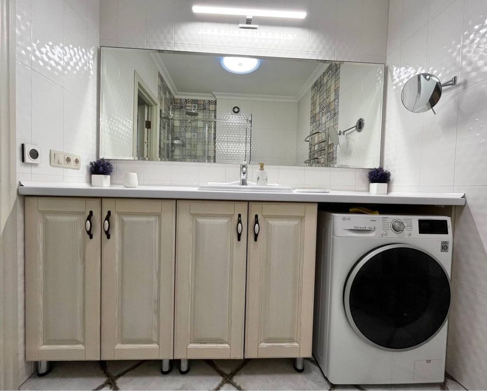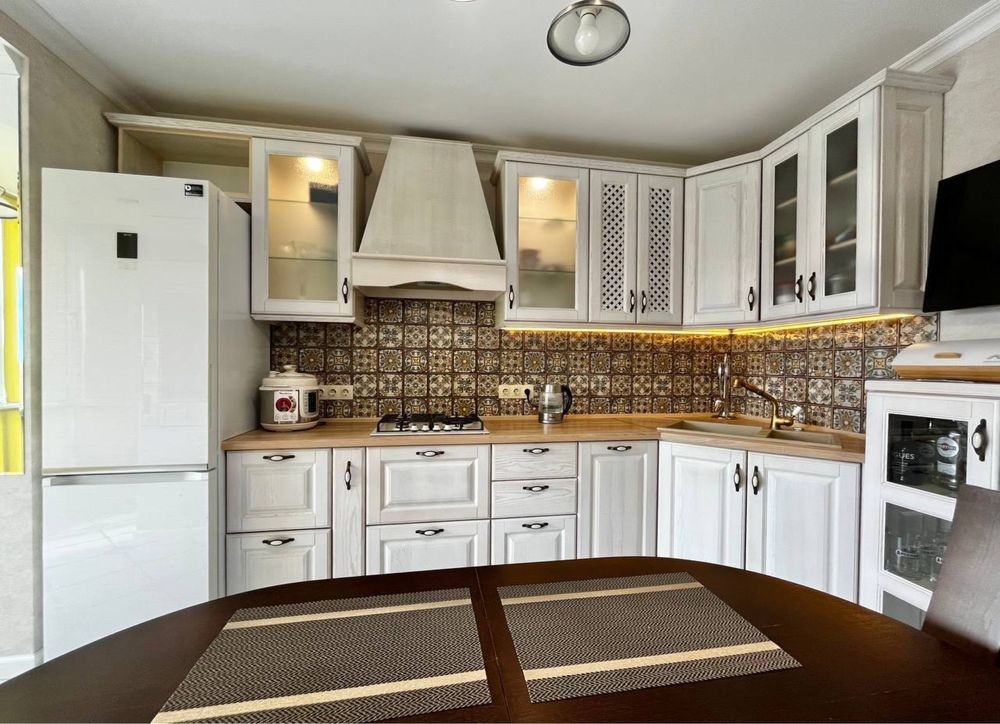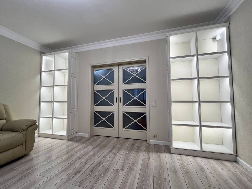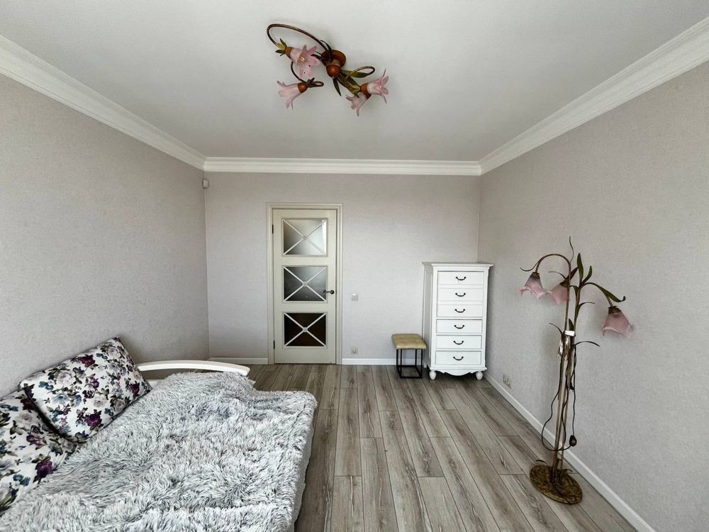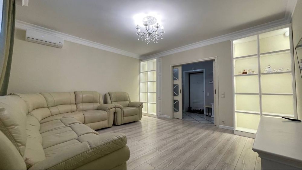Дорогой ремонт в современном французском стиле, обезшумлена, кафель Испания, теплые полы Danfoss (Дания), смесители Fiore Rubinetterie, Bianchi (Италия), дорогая корпусная и мягкая мебель, сигнализация, четыре кондиционера, бытовая техника Gorenje, Samsung, три ТВ Samsung.