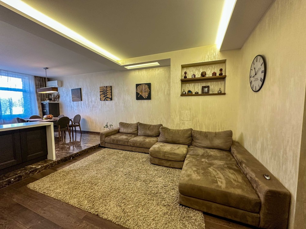 Авторский дизайн и качественный ремонт! На полу мрамор и паркет, мебель по индивидуальному заказу. Поностью укомплектована всем необходимым для жизни!