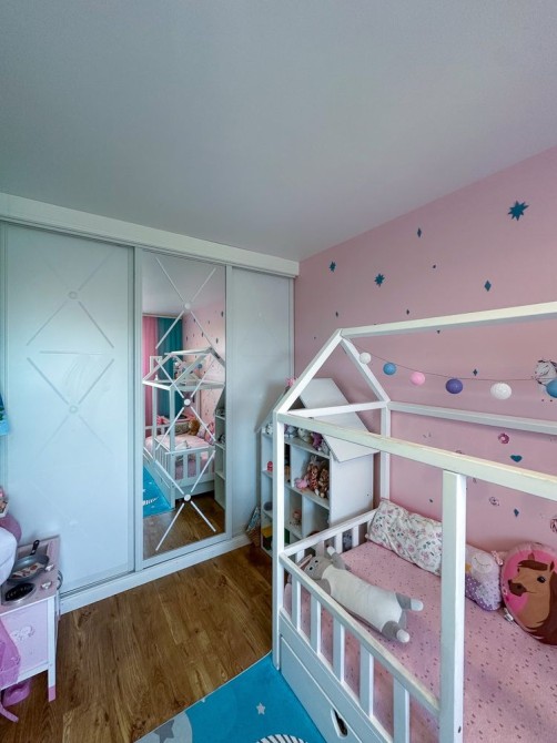 Площадь включает просторную кухню-студию и две комфортные спальни, идеально подходящие для семьи с детьми.