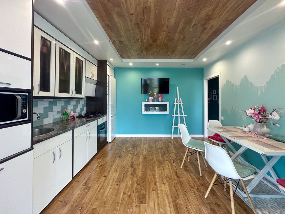 В квартире выполнен уникальный авторский ремонт с использованием качественных материалов и дизайнерских решений, что придаёт ей неповторимый характер и современный стиль.