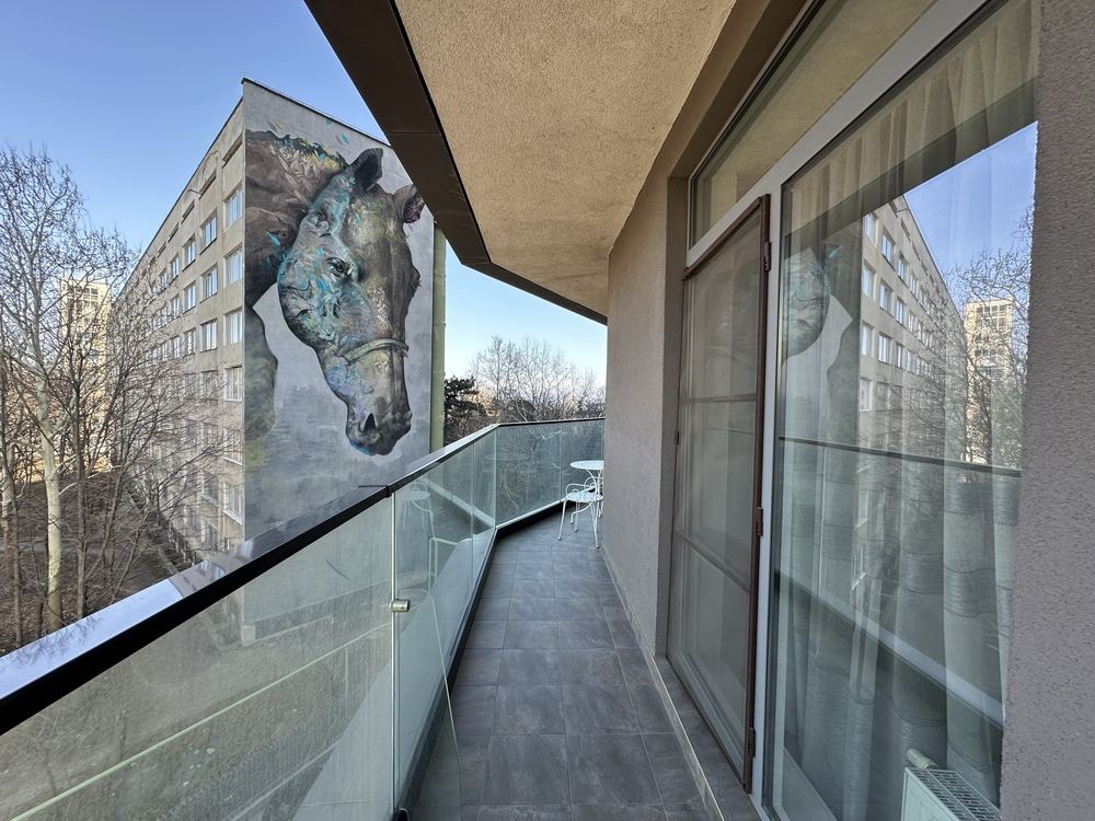 Большой открытый балкон вдоль квартиры.
